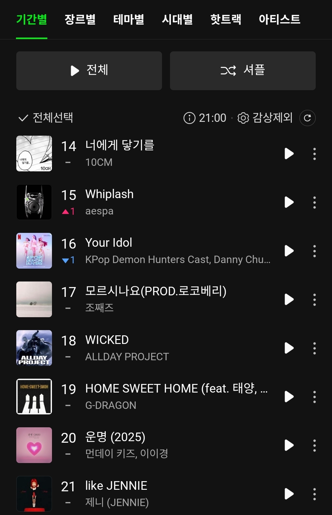 | Melon (Korea) | 1 | 16 | 3 |